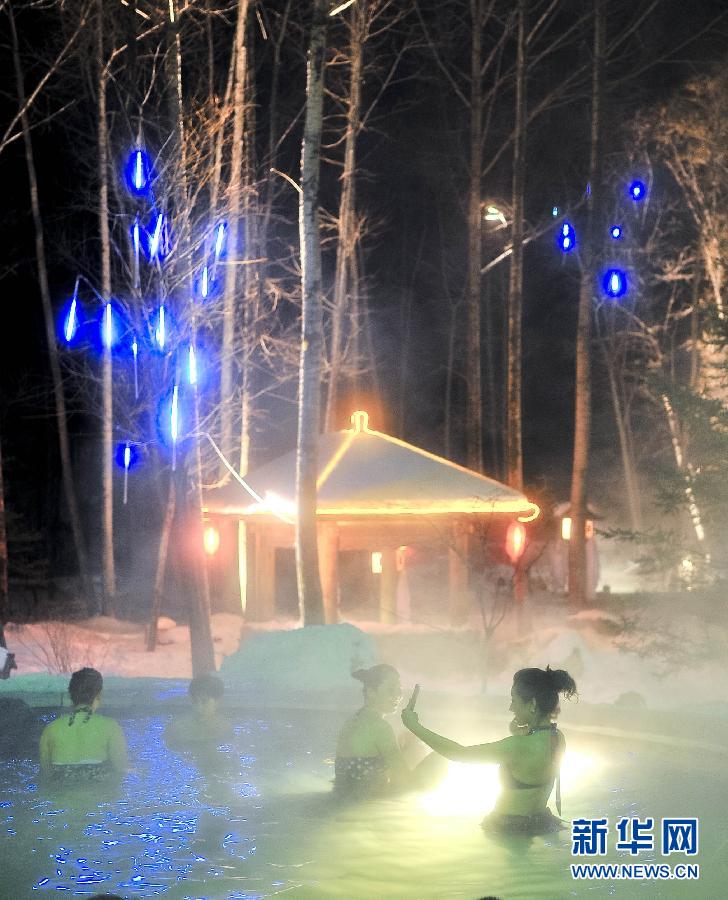 临近春节,吉林长白山进入冰雪旅游的最佳观赏体验季。在零下20摄氏度的天气中赏雪景、泡火山温泉,吸引了众多游客前来体验“冰火两重天”的奇妙感受。新华社记者许畅摄
