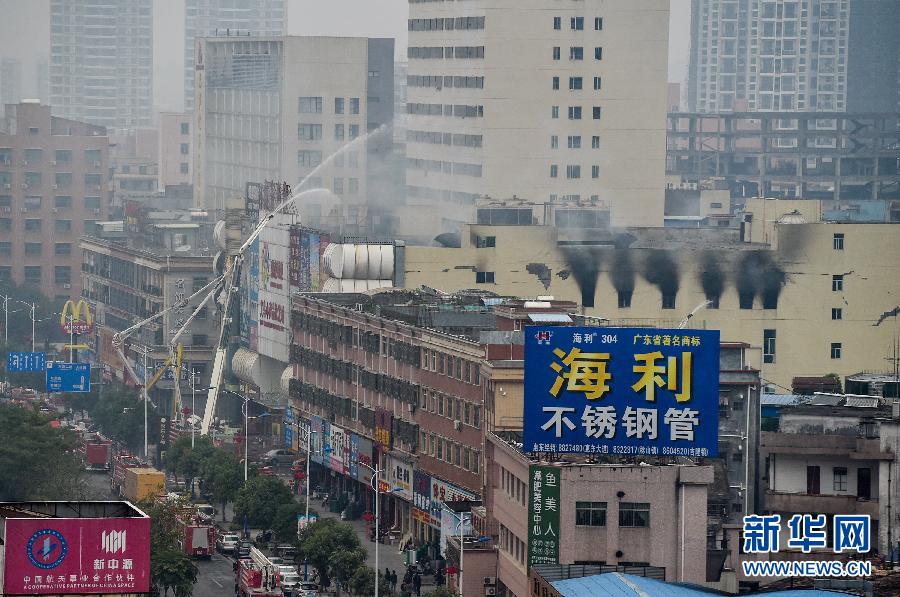 2月5日13时51分,广东省惠州市惠东县平山街道办惠东大道义乌商品城4楼仓库着火。该商场为4层钢筋混凝土结构,总建筑面积15000平方米。其中,1至3层经营餐饮和日用百货,4楼为电影院和仓库,着火部位位于4层中庭附近。新华社记者 毛思倩 摄