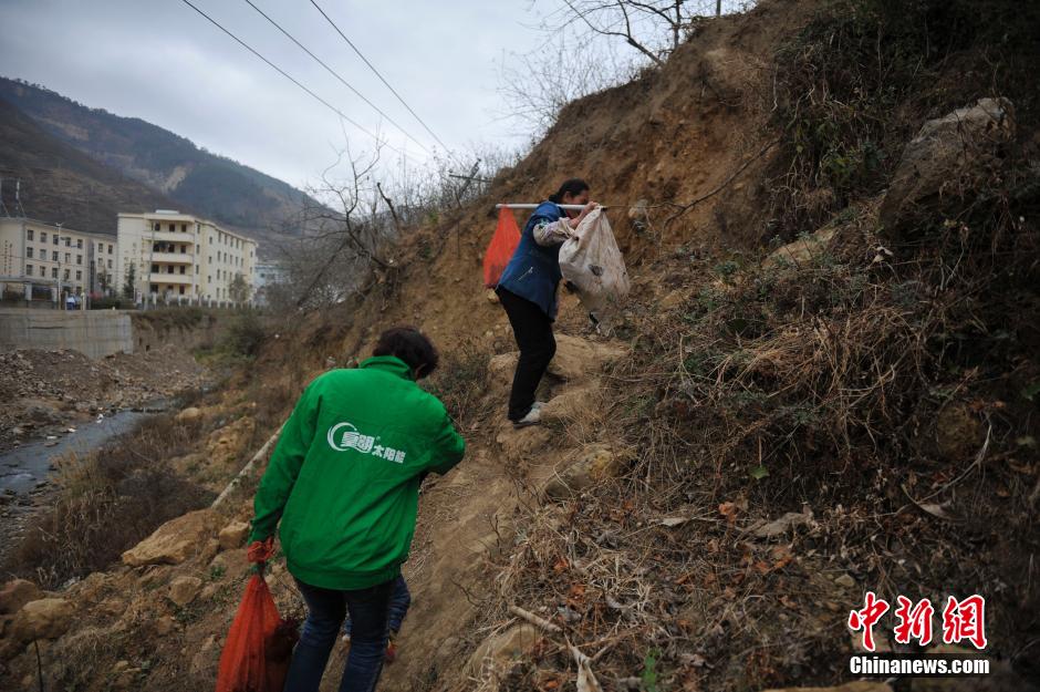 2月8日,赶集回家的民众。中国农历春节即将到来,云南鲁甸震区的民众在赶集时采购年货。 中新社发 刘冉阳 摄