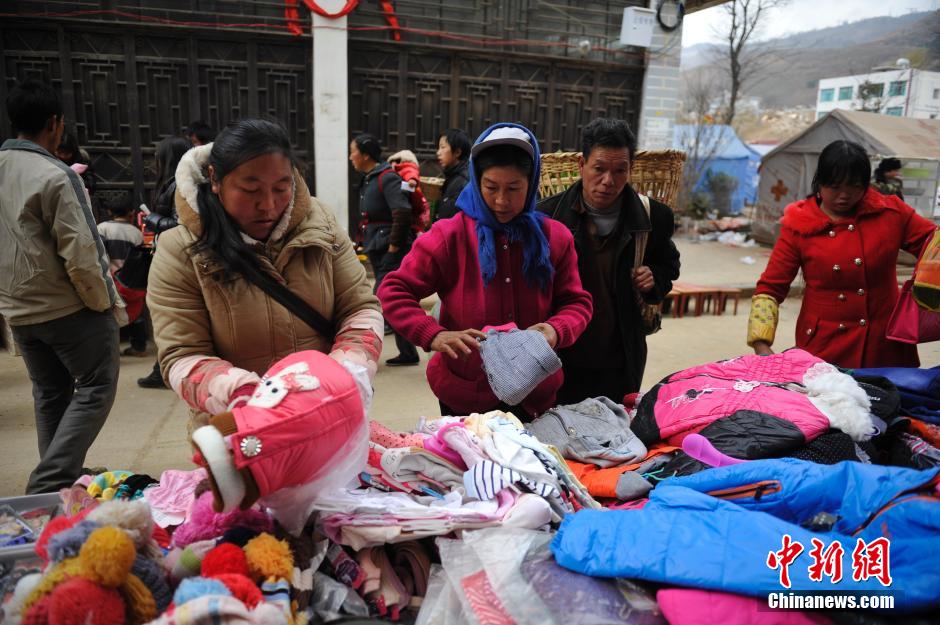 2月8日,中国农历春节即将到来,云南鲁甸震区的民众在赶集时采购年货。 中新社发 刘冉阳 摄
