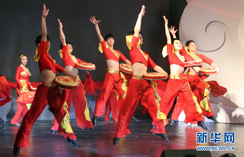 南京市歌舞剧院的演员表演舞蹈《欢乐的节日》,火红的颜色和充满激情的舞步点燃了观众的热情。新华社记者陈俊锋 摄