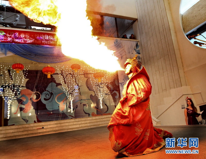 来自南京的艺术家表演变脸《川韵》,当地观众看得如痴如醉。新华社记者陈俊锋 摄