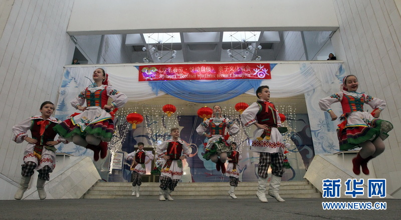 白国家青少年宫的舞蹈团也为远道而来的中国朋友表演了白俄罗斯民族舞蹈。新华社记者陈俊锋 摄