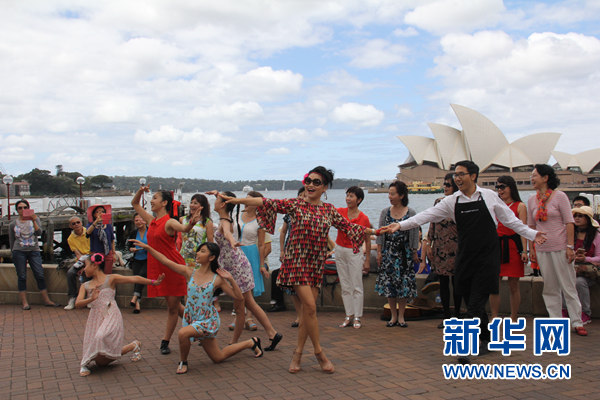新华网悉尼2月6日电(记者 张小军)2015年央视网络春晚全球快闪活动6日在悉尼的岩石区坎贝尔港举行,近200名悉尼华人艺术界代表在音乐声中载歌载舞,快闪迎羊年春节到来。