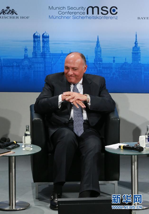 2月7日,埃及外长舒凯里出席在德国慕尼黑举行的慕尼黑安全会议。第51届慕尼黑安全会议6日在德国南部城市慕尼黑开幕,会议为期3天。本届会议的主题是“国际秩序的崩塌”。 新华社记者罗欢欢摄