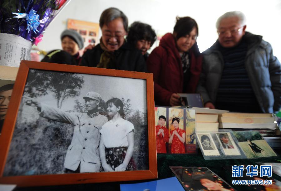 2月10日,社区居民观看展出的照片。当日,江苏省苏州工业园区东方社区举行了一场“晒甜蜜·迎新春”主题活动,来自社区的20对老年夫妇“晒”出年轻时各自的恋爱照、结婚照以及现在补拍的婚纱照,在回味甜蜜爱情的同时,喜迎羊年新春的到来。新华社发(杭兴微 摄)