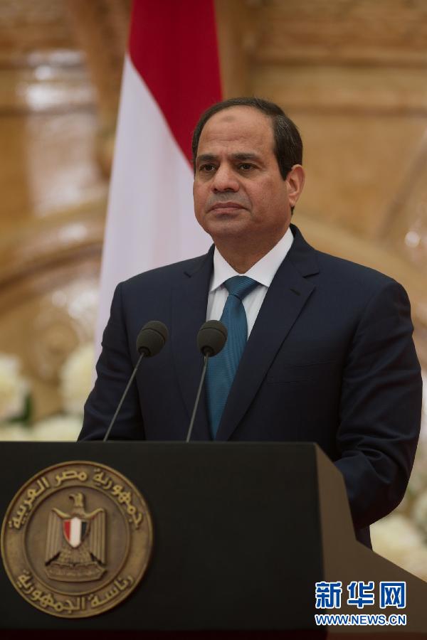 2月10日,在埃及首都开罗库巴宫,埃及总统塞西出席联合发布会。新华社记者潘超越摄