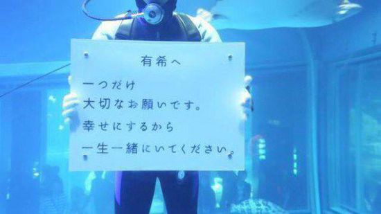 据日本新闻网站“en.rocketnews24.com”报道,日前,日本某水族馆推出一项“代理潜水求婚”的新服务,引发网友广泛热议。