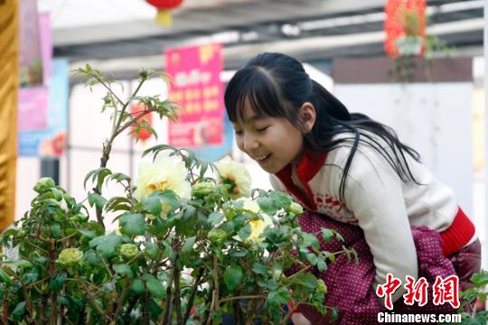 春节期间,乌鲁木齐室外气温最高温度在零度左右,外面白雪皑皑,但当地民众却可在植物园的温室大棚内观赏国花牡丹。10日,乌鲁木齐市首届迎春牡丹节在植物园牡丹展厅召开。王小军 摄