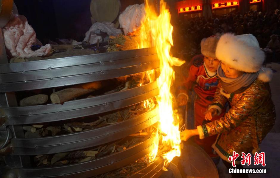 2月11日晚,甘肃肃北蒙古族自治县蒙古族同胞身着节日盛装聚集在一起祭祀火神,祈求来年一切顺利。每年农历腊月二十三日,传统的小年是蒙古族祭祀火神的日子,这是蒙古族的一种古老传统习俗。乌仁花 摄