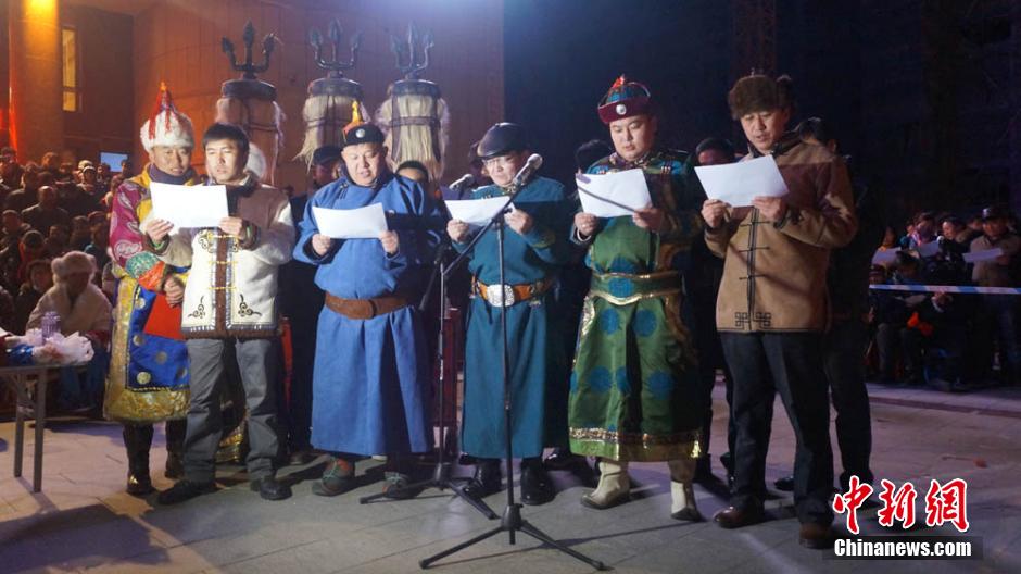 2月11日晚,甘肃肃北蒙古族自治县蒙古族同胞身着节日盛装聚集在一起祭祀火神,祈求来年一切顺利。每年农历腊月二十三日,传统的小年是蒙古族祭祀火神的日子,这是蒙古族的一种古老传统习俗。乌仁花 摄