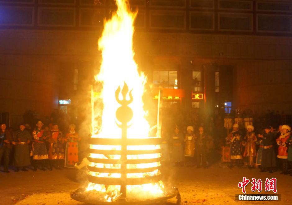 甘肃肃北蒙古族民众“小年”祭火祈福