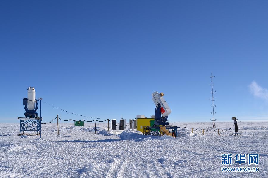 我国布放在南极内陆的南极天文望远镜阵全貌,左起分别为2015年安装的南极巡天望远镜、2012年安装的首台南极巡天望远镜和2015年安装的南极亮星测光望远镜(1月25日摄)。记者从中国第31次南极科考队内陆队获悉,一台由我国自主研发的南极巡天望远镜已于近日在南极内陆冰盖最高点——冰穹A附近的昆仑站安装完毕,即将投入观测运行。这意味着我国布放在南极内陆地区的天文望远镜阵又添一员“大将”。这台“AST3-2”巡天望远镜是我国在冰穹A地区布放的第二台南极巡天望远镜。其主镜口径达680毫米,有效通光口径达500毫米,采用了我国创新设计的大视场折反射望远镜光学系统,具备指向跟踪和自动调焦等功能,是南极现有最大的光学望远镜。它配备的单片CCD相机像素达1亿,一次曝光可覆盖约4.3平方度的天空,相当于18个月亮的大小。新华社发 图片来源:新华网
