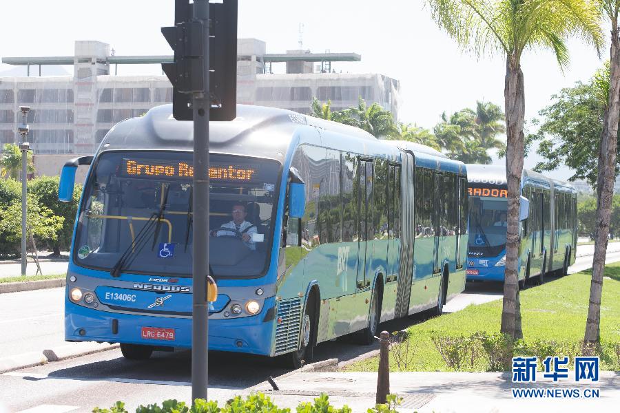2月11日,在巴西里约热内卢举行的反恐演习中,被“恐怖分子”劫持的快速公交车驶入站台。新华社记者 徐子鉴 摄