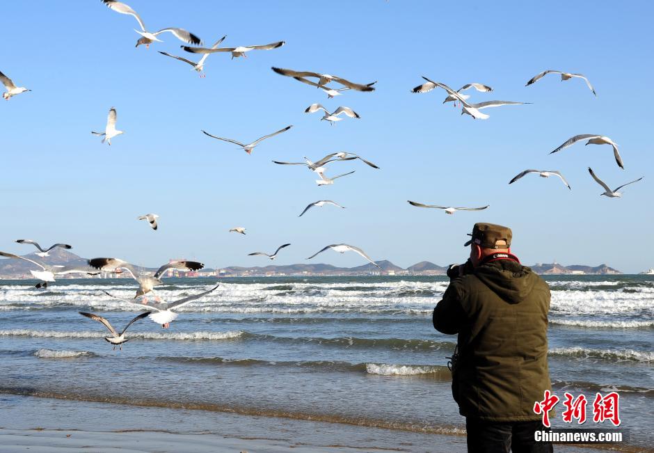 2月12日上午,上千只海鸥聚集烟台第一海水浴场附近,等待喂食。“千鸥争食”成为冬季烟台海滨一道风景,吸引许多摄影发烧友。当地几年前成立了海鸥养护小组,负责海鸥的日常喂养与救治,如今海鸥数量大大增加。 中新社发 王娇妮 摄