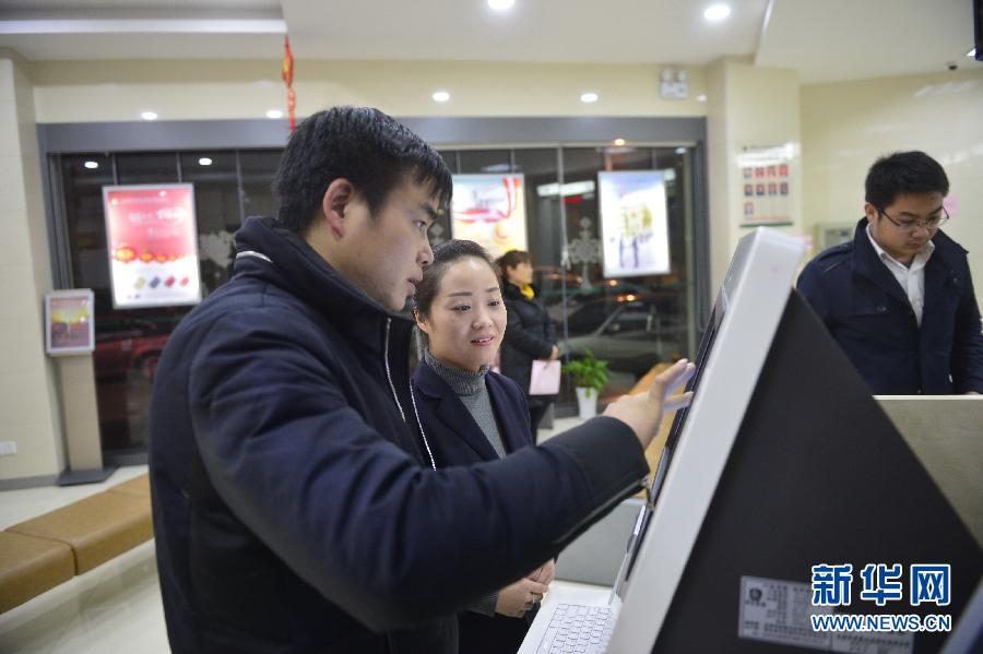 尽管目前电子银行业务已越来越普及,但有许多银行业务仍需在营业柜台办理。“上班去银行得请假,下班去银行已关门”成为不少上班族的头疼事。江西省南昌市红谷农商银行(筹)从2015年1月底开始在红谷滩支行试点为上班族打造的“夜间银行”服务。据介绍,红谷滩支行位于南昌市上班族密集的小区。试点期间,夜间银行每周三将营业时间延长至晚上9点,主要办理非现金业务,同时还提供微信购买提取农副产品的服务。新华社记者 周密 摄