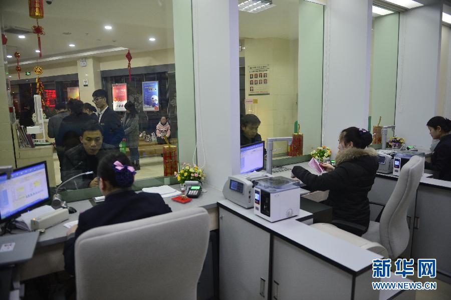 银行工作人员在南昌市红谷农商银行(筹)红谷滩支行“夜间银行”试点为用户办理业务(2月11日摄)。新华社记者 周密 摄