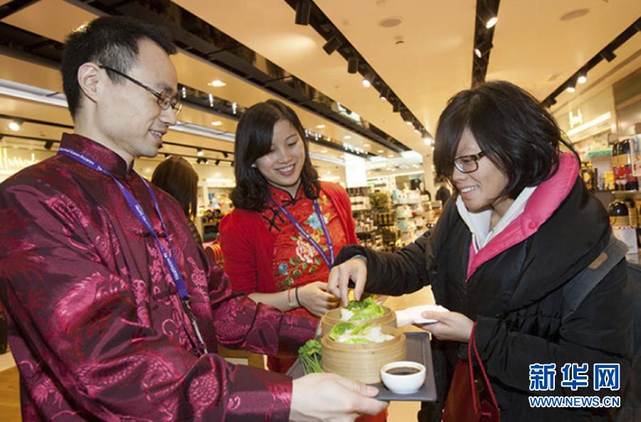2月11日,伦敦希思罗机场的中文导购服务人员在为旅客服务。新华社发