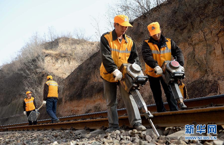 位于陕西韩城黄土高原深处的西铁局阎良工务段龙亭线路车间乔子玄工区是侯(马)西(安)线上的一个特殊的小站,受机车动力要求及地理地貌影响,1971年线路修建时该工区管辖的线路被设计为盘山路,俯瞰线路外形酷似白炽灯,所以又被称为“灯泡”工区。作为西煤外运要道上的一份子,44年来,每天多趟载重货车和客车在这条线路上运行,工区的养护工人们也兢兢业业地长年驻守在这偏僻大山中,保障着线路安全,与外界唯一的通道不是铁路反而是一条需要步行近一小时才能到达临近村庄的羊肠小道。今年,随着新的黄(陵)韩(城)侯(马)铁路即将建成通车,乔子玄工区也迎来了它的最后一个春运,在这里奉献了青春的养路人也将随着“灯泡”工区的消失走向其他地方。为了保证最后一个春节的行车安全,站好新线开通前最后一班岗,工区的养路人更加细致地进行着春运设备的安全整修工作,不间断对线路进行巡查,努力让工区持续安全生产11602天的奇迹保持到最后一刻。新华社记者 刘潇摄