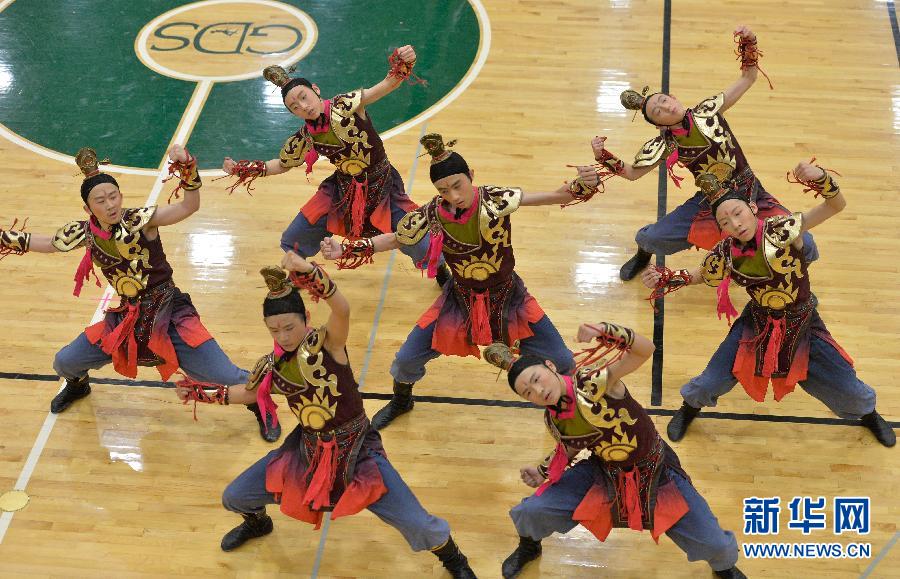 2月11日,在美国首都华盛顿,中国人民大学附属中学艺术团的学生们表演舞蹈。当晚,中国人民大学附属中学艺术团在美国乔治城中学举行“欢乐春节”演出,受到现场观众热烈欢迎。 新华社记者鲍丹丹摄