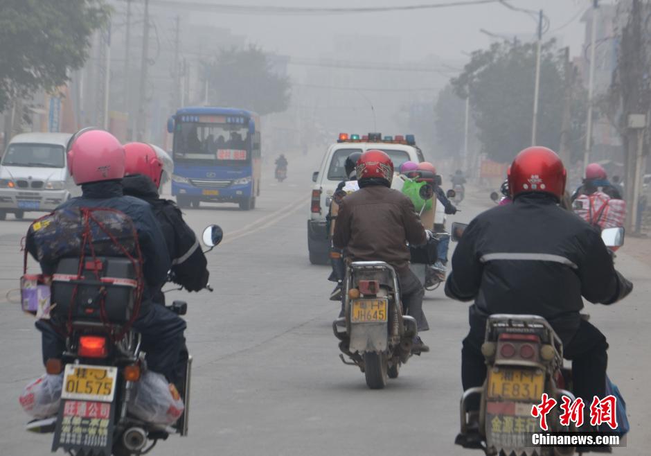 2月12日,广东S349线“暖流行动”怀集县交警为广西、湖南、贵州等地回乡过年的春运“铁流”大军服务,许多“铁流”“骑手”凌晨2点就从珠三角务工地出发返乡。图为怀集交警为出境的“铁流”开道。中新社发 黄耀辉 摄