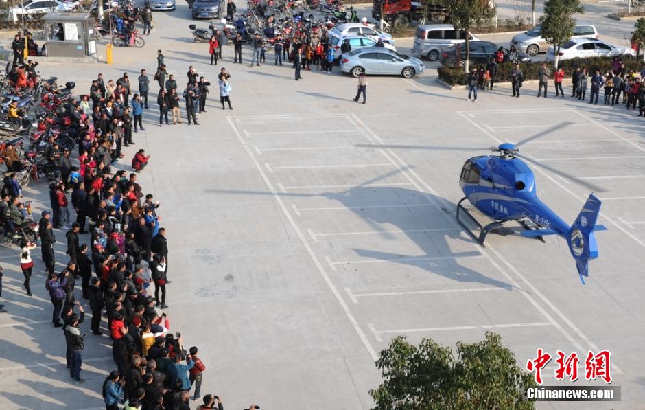 2月12日,湖南平江石牛寨景区直升机旅游专线正式开通,近千村民与游客在景区内围观飞机首飞。据主办方介绍,作为湖南首个推行直升机旅游的景区将带给游客一个全新的旅游方式,让更多的普通市民能搭乘直升机旅游。 杨华峰 摄