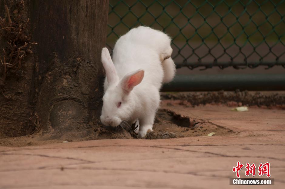 2月12日,广西柳州动物园出现了一只倒立行走的兔子,其先在网上走红后,吸引了不少游客前来围观。有市民认为这只子因为先天残疾只能用前脚走路,并称呼其为“兔坚强”。黄威铭 摄