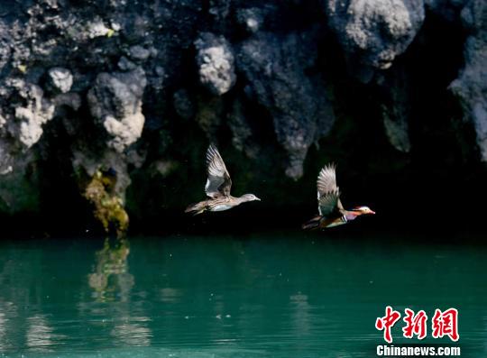 近日,近百只鸳鸯在湖南张家界大峡谷景区的湖光山色里驻留、嬉戏。据了解,每年都有不少鸳鸯迁徙至张家界大峡谷越冬,让其变成“鸳鸯谷”、“情人谷”。张明涛摄