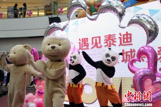 泰迪熊跳起了“小苹果”。 张道正 摄
