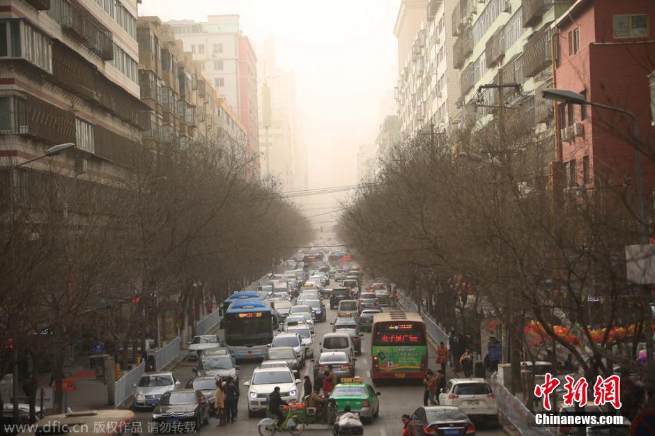 2月14日,沙尘暴肆虐兰州。情人节当日,市内黄沙弥漫,能见度极低。行人纷纷带上口罩。陈立稳 摄 图片来源:东方IC 版权作品 请勿转载