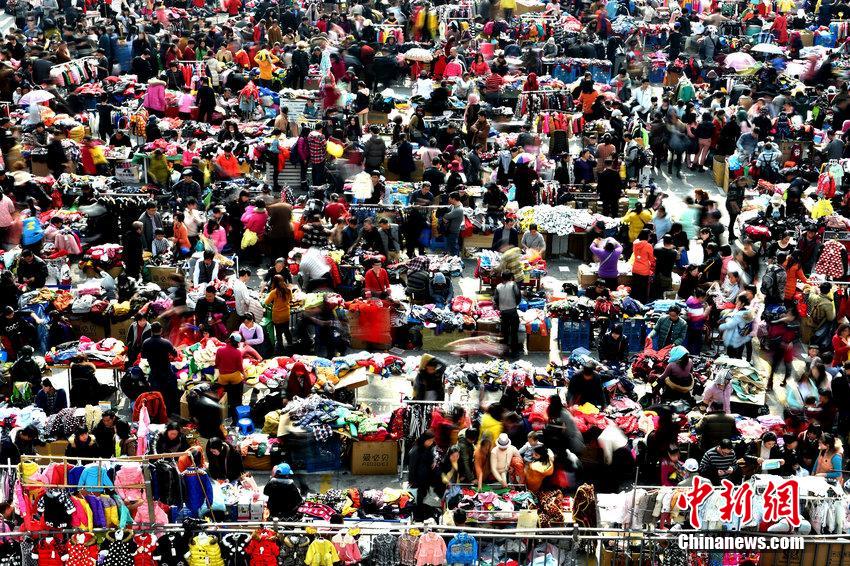 2月14日,杭州某服装市场外的摊位上人山人海,商户们忙着在年前低价抛售库存,进行最后的大甩货,吸引了大批淘客赶来淘宝。据了解,除了室外的摊位外,各个市场里也都开始了甩货处理。除个别市场在2月16日休市以外,其他服装市场在2月18日休市。