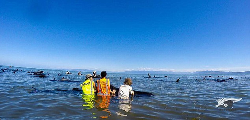 新西兰海滩198头鲸鱼搁浅 已有50头死亡