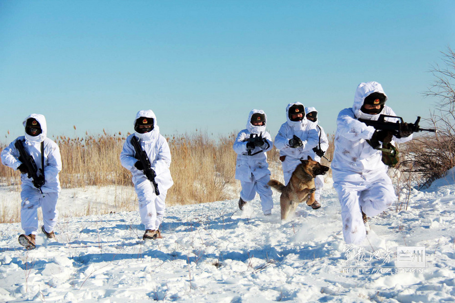 新型雪地伪装服以白色布料为主,辅以枯叶、沙漠等米黄色,既吻合雪地、冰面的颜色,又能适应草丛、沙漠等环境,官兵们一卧倒便隐入了雪中。穿戴起来也更为轻便,方便官兵闪转腾挪、匍匐跳跃。此外还具备挡风阻燃、防热辐射等效果。图为战士身穿雪地伪装服进行战术训练。图片来源:军报记者网