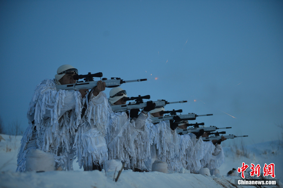 与常规部队相比,特种部队的雪地伪装就相当专业了。日前,沈阳军区某特战旅开赴林海雪原进行战斗演练,公布的图片显示,特种兵们身穿雪地吉利服,战斗装具藏在吉利服内,手中的自动步枪也经过了伪装处理,十分专业。中新社发 杨再新 摄