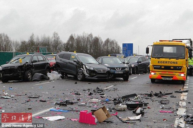 据英国《每日邮报》2月14日报道称,英国发生40辆车连环车祸,至4人死亡,50人受伤,图为在M40公路路口40车辆相撞现场。