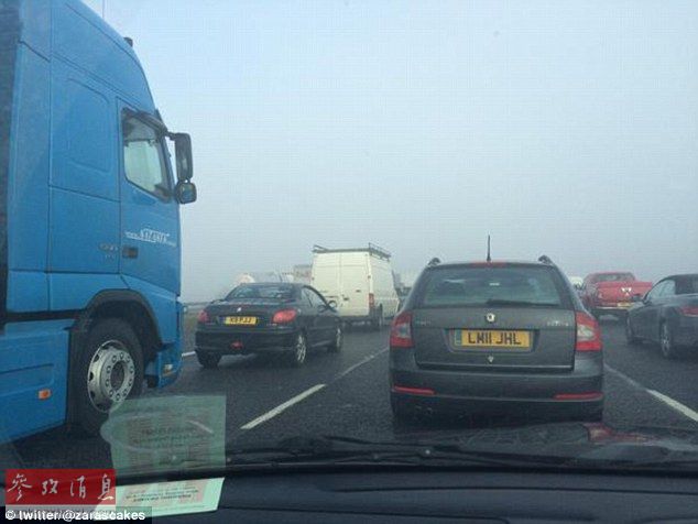 消防队员、警察和医护人员都在现场。图为M40公路堆积了大量车。