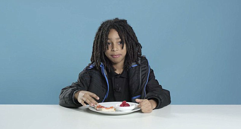 这个小男孩喜欢来自芬兰食物,不过他以为来自非洲。(网页截图)