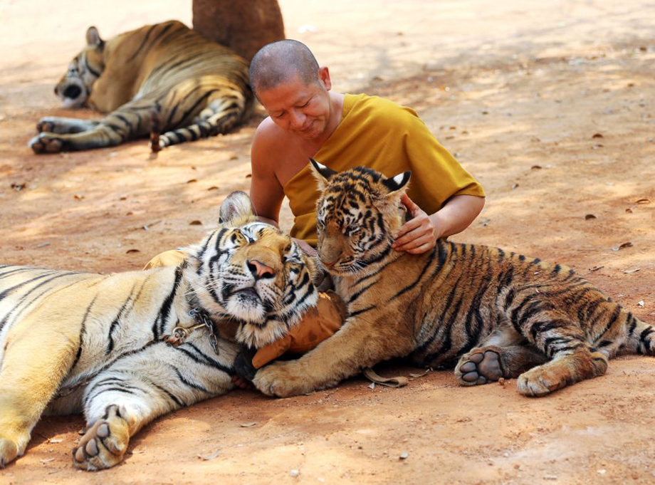 泰国寺庙僧侣和140多只老虎共同生活