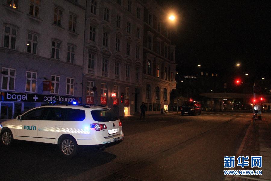 2月15日凌晨,在丹麦首都哥本哈根,警车停在枪击案地点附近。丹麦警方当日凌晨发布消息称,首都哥本哈根一地铁站附近发生枪击案,一人被击中头部,两名警察受伤。当地时间14日下午4时哥本哈根市区一处文化中心内刚刚发生枪案,造成1人死亡,3名警察受伤,凶手在逃。警方目前还不能确认这两起枪击案是否有关联。警方目前正在抓捕涉案凶手。新华社记者石寿河摄