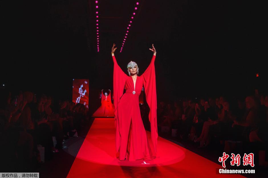 2月12日,纽约时装周上演红裙主题秀,众女星助阵。