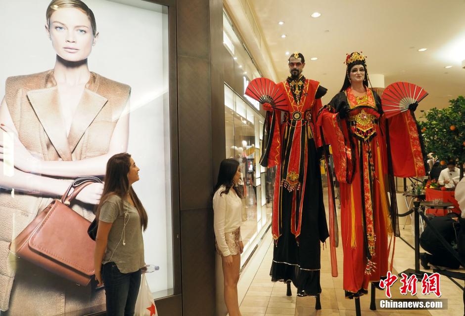 当地时间2月12日晚,有美国西部最大购物中心之称的洛杉矶南岸广场举行庆祝中国农历新年活动,新华影廊图片展以及传统京剧、变脸、武术、魔术等表演吸引众多嘉宾与参观者。 中新社发 毛建军 摄