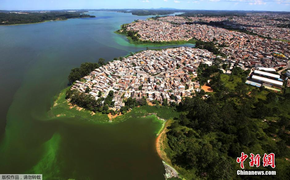 图为当地时间2月12日,圣保罗,Billings水库边上的违法贫民区被污染的废水环绕。Billings水库给160万人供水,由于干旱造成的水资源短缺,干净的饮用水获取难度也随之增大,当地政府希望能够把干净的水资源作为商品出售。