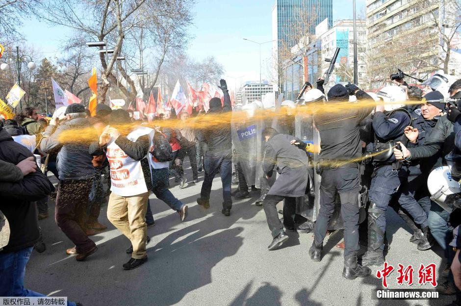 当地时间2015年2月13日,土耳其伊斯坦布尔,学生示威抗议政府教育政策。