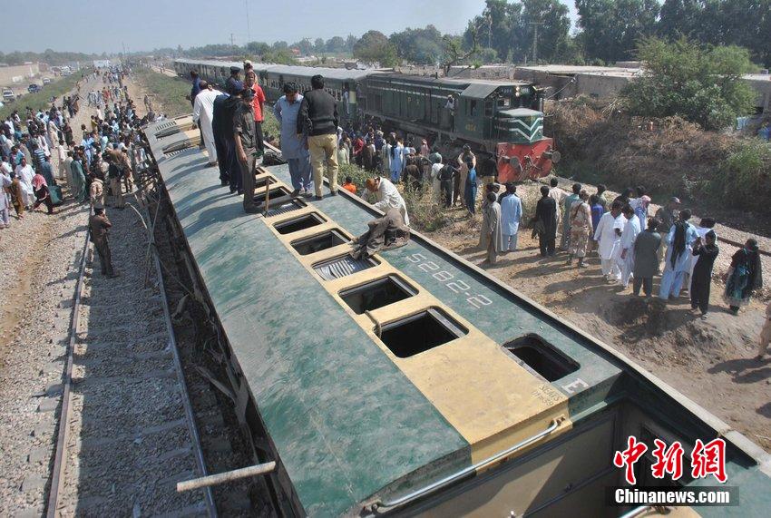 当地时间2015年2月14日,巴基斯坦海德拉巴,当地一列从拉合尔开往卡拉奇的火车发生脱轨事故,导致大约30人受伤,其中一些人伤势严重。