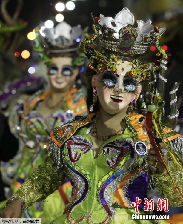 图为2月14日,玻利维亚奥鲁罗省的狂欢节现场。