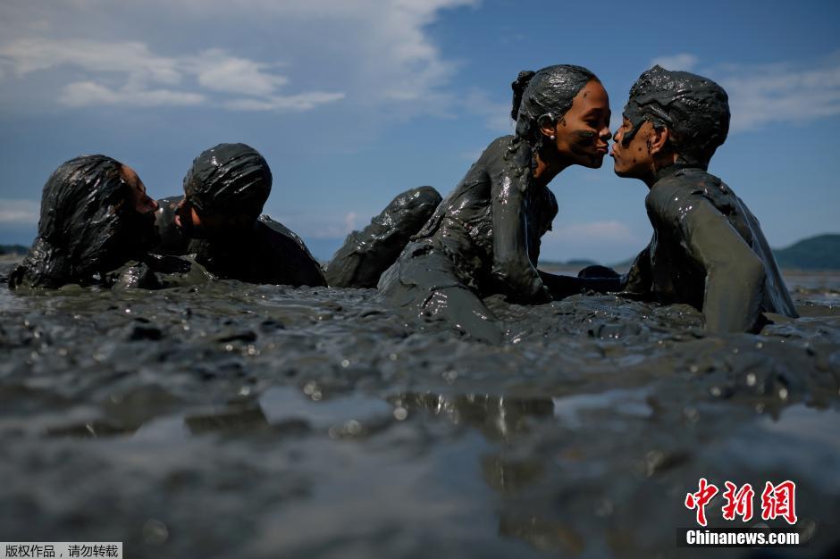 当地时间2月14日,巴西海滨小镇帕拉蒂(Paraty),当地居民庆祝泥浴狂欢节。泥浴狂欢节被称为“Bloco da Lama”,从1986年开始,由两个青少年在泥巴里玩耍发展到现在的全镇居民参与的规模。