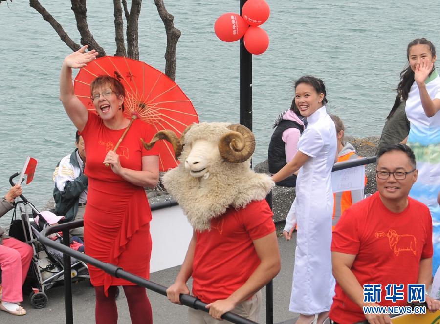 2月15日,在新西兰首都惠灵顿,惠灵顿市长西莉亚·韦德-布朗(左一)参加巡游活动。当日,新西兰首都惠灵顿市举行系列活动庆祝中国农历新年。除在惠灵顿市区举行的花车巡游外,当地华人社团、中文学校及受邀参加活动的中国艺术团体也为惠灵顿市民带来精彩纷呈的演出。新华社记者宿亮摄