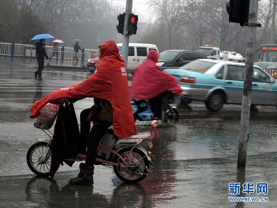 2月15日,一位冒雨骑车的市民在济南市解放路口等待信号灯。当日,新年第一场春雨沐浴齐鲁大地。据山东省气象台预报,14日晚到15日,山东省自西向东出现降雨天气,其中鲁南和鲁中的南部地区出现小到中雨,降雨量5~10毫米;其他地区小雨,降雨量1~6毫米。本次降水对缓解旱情、降低森林火险等级、净化空气、改善农田表墒以及对济南泉城的蓄水保泉十分有利。新华社记者 冯杰摄