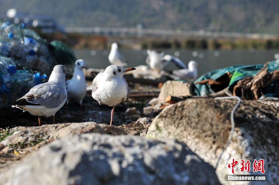 图为一只残疾红嘴鸥等待杨水兰的食物。 中新社发 任东 摄