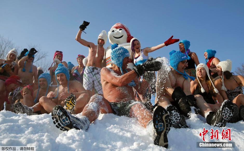 当地时间2月14日,加拿大魁北克冰雪狂欢节,男女均着泳装在雪地里打雪仗,热情战胜低温。